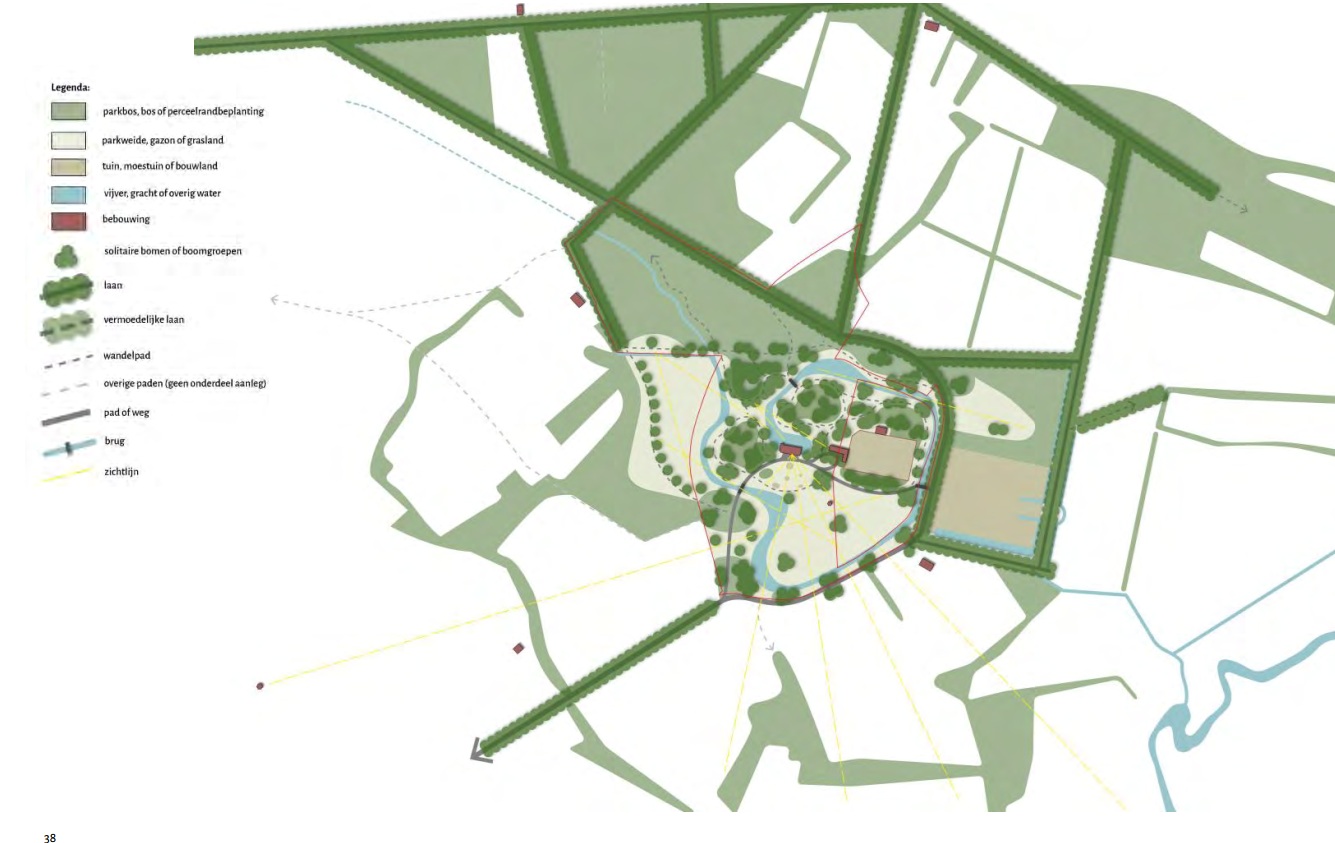 Bij deze vorstelijke woning hoorde ook een vorstelijke tuin met een imposante en zeer uitgestrekte aanleg en een lanenstelsel dat zich uitstrekte van de Berkel tot ten noorden van het huidige Twentekanaal. Het landgoed omvatte bovendien 17 boerderijen en de Almense molen. De landerijen strekten zich uit van Almen tot aan Groot Dochteren en telden zo’n 500 hectare.
