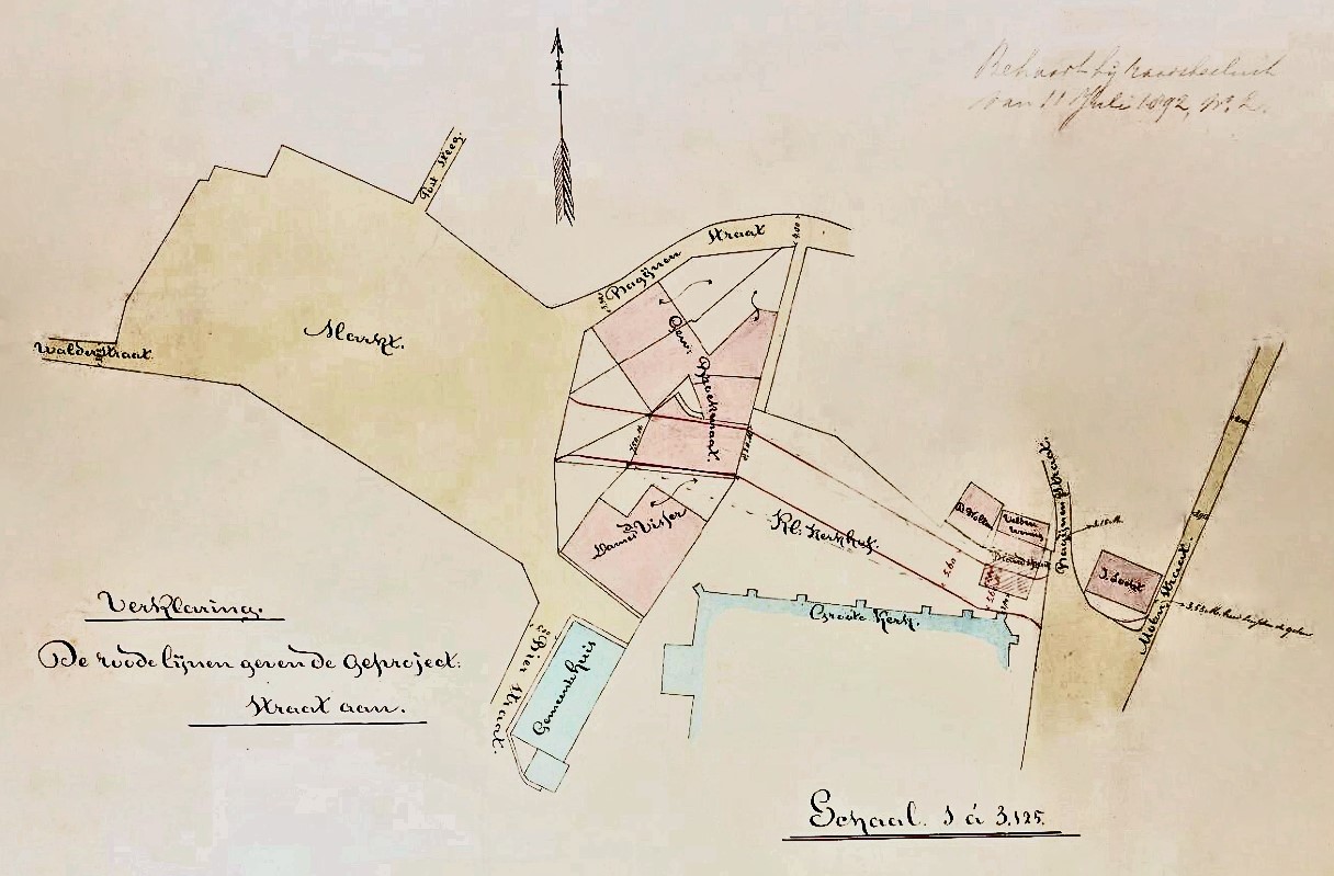 Toen in 1892 de weduwe Broekmaat overleed en haar erflaters haar huis aan de Markt (tegenwoordig Kawop) wilden verkopen, zag de gemeente haar kans schoon en kocht alles op. Ook de gezusters De Visser werden benaderd of zij ook niet genegen waren hun huis aan de gemeente te verkopen, zodat het oude kerkhofgedeelte ten noorden van de kerk bij de Markt kon worden getrokken.