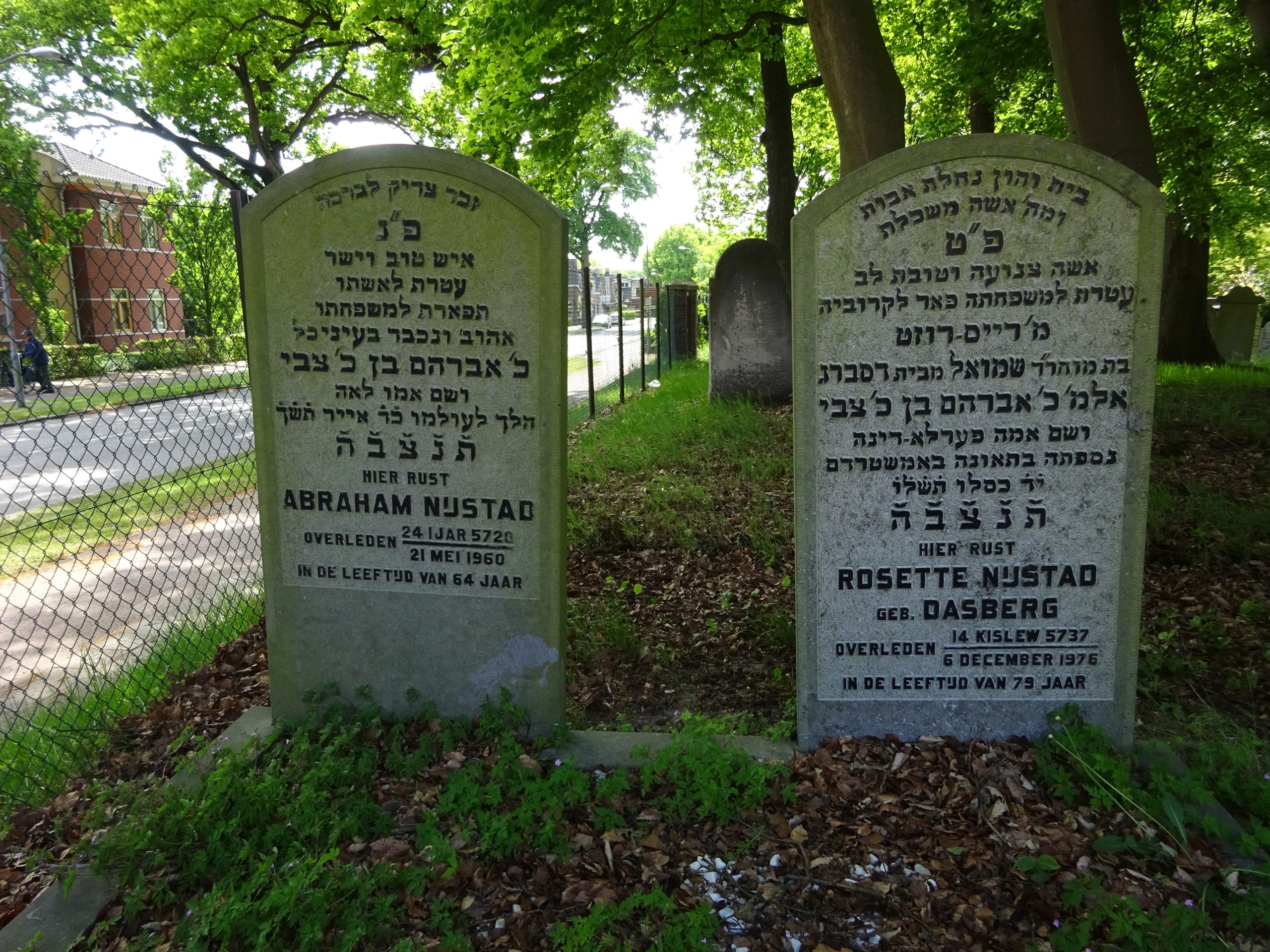 Lees het uitgebreide verhaal over Nijstad op deze site, met name rondom zoon Abraham die de winkel groot maakte. De zerk van deze Abraham en zijn vrouw Rosette Nijstad – Dasberg zie hieronder.